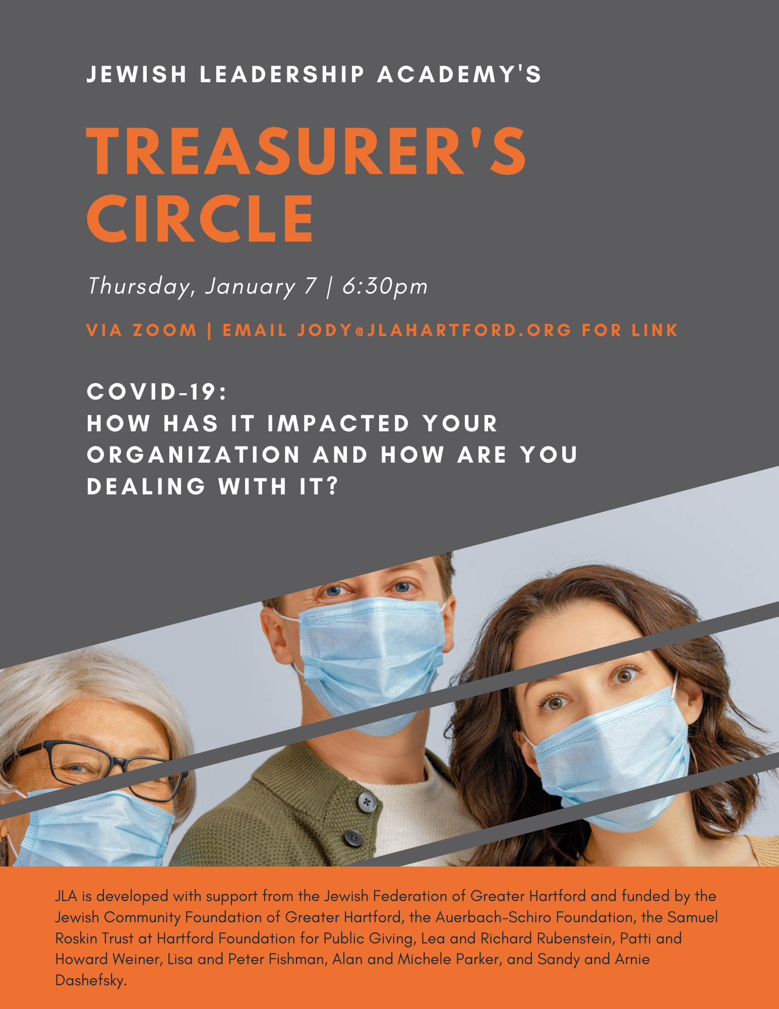 The Jewish Leadership Academy invites Treasurers of Jewish Organizations and Synagogues to join us at our next meeting of the Treasurers’ Circle on January 7th via zoom.